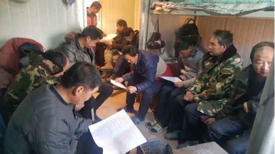 作為安全培訓(xùn)到基層的下一站,該項(xiàng)目部施工人員多,施工技術(shù)要求高,施工自然環(huán)境多變,加之冬季施工安全因素復(fù)雜,除了既定的安全培訓(xùn)內(nèi)容,安全檢查工作也成為此次下基層工作的重點(diǎn)。安檢組首先對(duì)施工現(xiàn)場(chǎng)進(jìn)行了安全大檢查,對(duì)存在的安全隱患提出了現(xiàn)場(chǎng)整改意見及措施,張巍針對(duì)冬季野外施工、野外用火、用電安全、車輛安全、特別是冬季取暖應(yīng)注意的事項(xiàng)等問(wèn)題在項(xiàng)目安全會(huì)議上進(jìn)行了重點(diǎn)強(qiáng)調(diào)。安全培訓(xùn)過(guò)程中按照計(jì)劃學(xué)習(xí)內(nèi)容,組織項(xiàng)目全體職工進(jìn)行了集中學(xué)習(xí),并通過(guò)答題活動(dòng)對(duì)所學(xué)知識(shí)予以鞏固,增強(qiáng)了一線員工的安全意識(shí)、責(zé)任意識(shí)和防范意識(shí)。(胡勇)